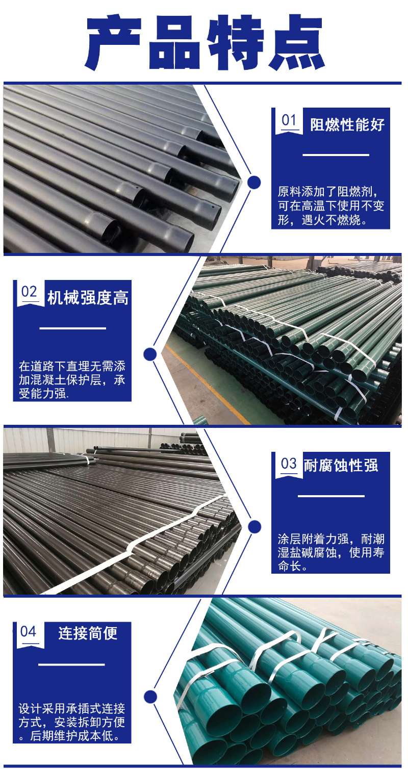熱浸塑穿線管隨著電力電纜埋地敷設工程的迅速發(fā)展,對電纜套管提出的更高要求,熱浸塑穿線管是以高強度的鋼管為基礎材料,不飽的聚酯樹脂為基體材料,采用熱浸塑而成。