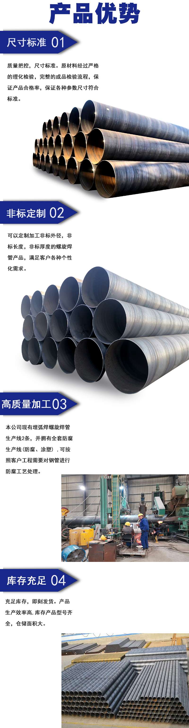 滄州友誠管業(yè)法蘭焊接鋼管專業(yè)生產(chǎn)廠家,法蘭焊接國標(biāo)螺旋鋼管埋弧焊是以連續(xù)送時(shí)的焊絲作為電極和填充金屬。焊接時(shí),在焊接區(qū)的上面覆蓋一層顆粒狀焊劑,電弧在焊劑層下燃燒,將焊絲端部和局部母材熔化,形成焊縫。在電弧熱的作用下,上部分焊劑熔化熔渣并與液態(tài)金屬發(fā)生冶金反應(yīng)。熔渣浮在金屬熔池的表面,一方面可以保護(hù)焊縫金屬,防止空氣的污染,并與熔化金屬產(chǎn)生物理化學(xué)反應(yīng),改善焊縫金屬的萬分及性能;另一方面還可以使焊縫金屬緩慢泠卻。埋弧焊可以采用較大的焊接電流。與手弧焊相比,其*da的優(yōu)點(diǎn)是焊縫質(zhì)量好,焊接速度高。因此,它特別適于焊接大型工件的直縫的環(huán)縫。而且多數(shù)采用機(jī)械化焊接。埋弧焊已廣泛用于碳鋼、低合金結(jié)構(gòu)鋼和不銹鋼的焊接。由于熔渣可降低接頭冷卻速度,故某些高強(qiáng)度結(jié)構(gòu)鋼、高碳鋼等也可采用埋弧焊焊接。埋弧焊鋼管:是以帶鋼卷板為原材料,經(jīng)常溫?cái)D壓成型,以自動(dòng)雙絲雙面埋弧焊工藝焊接而成的螺旋縫鋼管。埋弧焊螺旋鋼管是以連續(xù)焊絲作為電極和填充金屬,工作時(shí)在焊接區(qū)的上面覆蓋一層顆粒狀焊劑,電弧在焊劑層下燃燒,將焊絲端部和局部母材熔化,形成焊縫在電弧熱的作用下,上部分焊劑熔化熔渣并與液態(tài)金屬發(fā)生冶金反應(yīng)。熔渣浮在金屬熔池的表面,一方面可以保 護(hù)焊縫金屬,防止空氣的污染,并與熔化金屬產(chǎn)生物理化學(xué)反應(yīng),改善焊縫金屬的萬分及性能;另一方面還可以 使焊縫金屬緩慢泠卻。