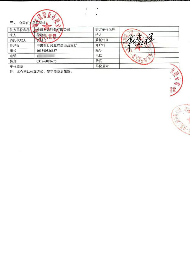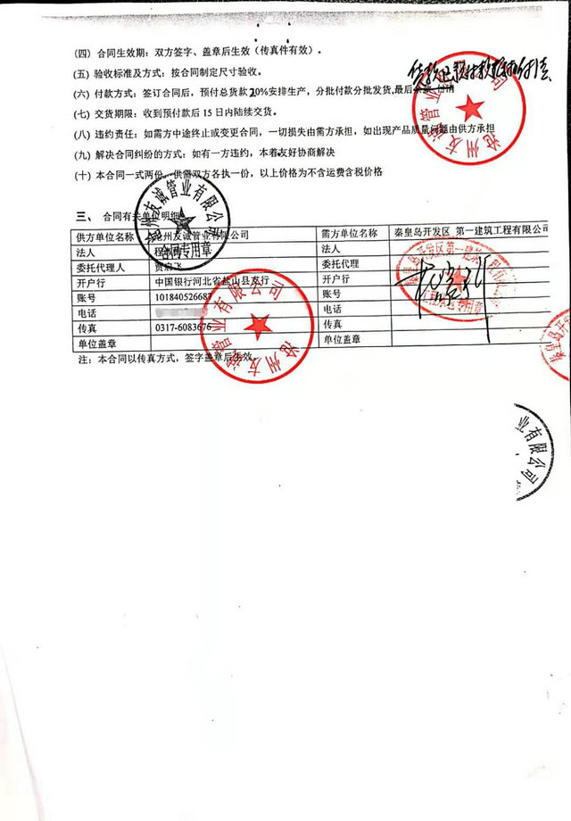 秦皇島開(kāi)發(fā)區(qū)第一建筑工程有限公司與我公司,2016年簽訂秦皇島開(kāi)發(fā)區(qū)引青供水工程項(xiàng)目防腐管道合同,我們已最優(yōu)質(zhì)的產(chǎn)品質(zhì)量,順利愉快的完成了這次合作,感謝客戶對(duì)我們的信賴,我公司將一如既往再創(chuàng)輝煌